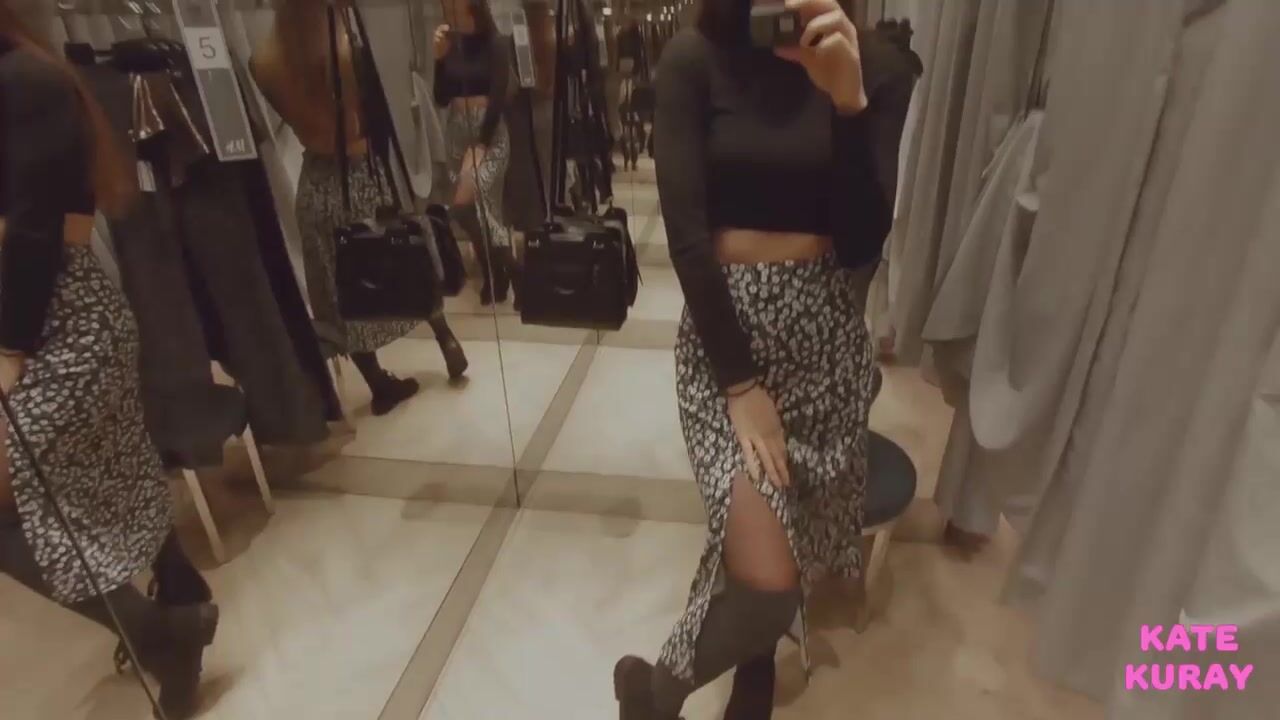 Katekuray - Babe Sticks Dildo In Her Ass In A Clothing Store Fitting Room