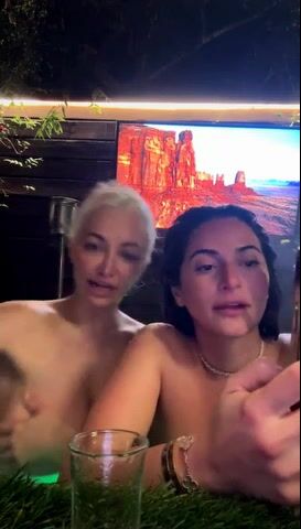 «Looks like a lesbian thing going on! They are feeling out one another. Playing with each other tits. I wonder if they played with each other's kitty?? And did oral on each other??? The fake blonde looks like gravity is starting to take over and getting some cellulite om her. If she has children, she will look like a shape of a football. Looks like she has a very big ass. And it will only get bigger as age and having kids will do that. And the fake blondes' boobs look is starting to sag. Be down around her belly button by the time she is 50 or so.»