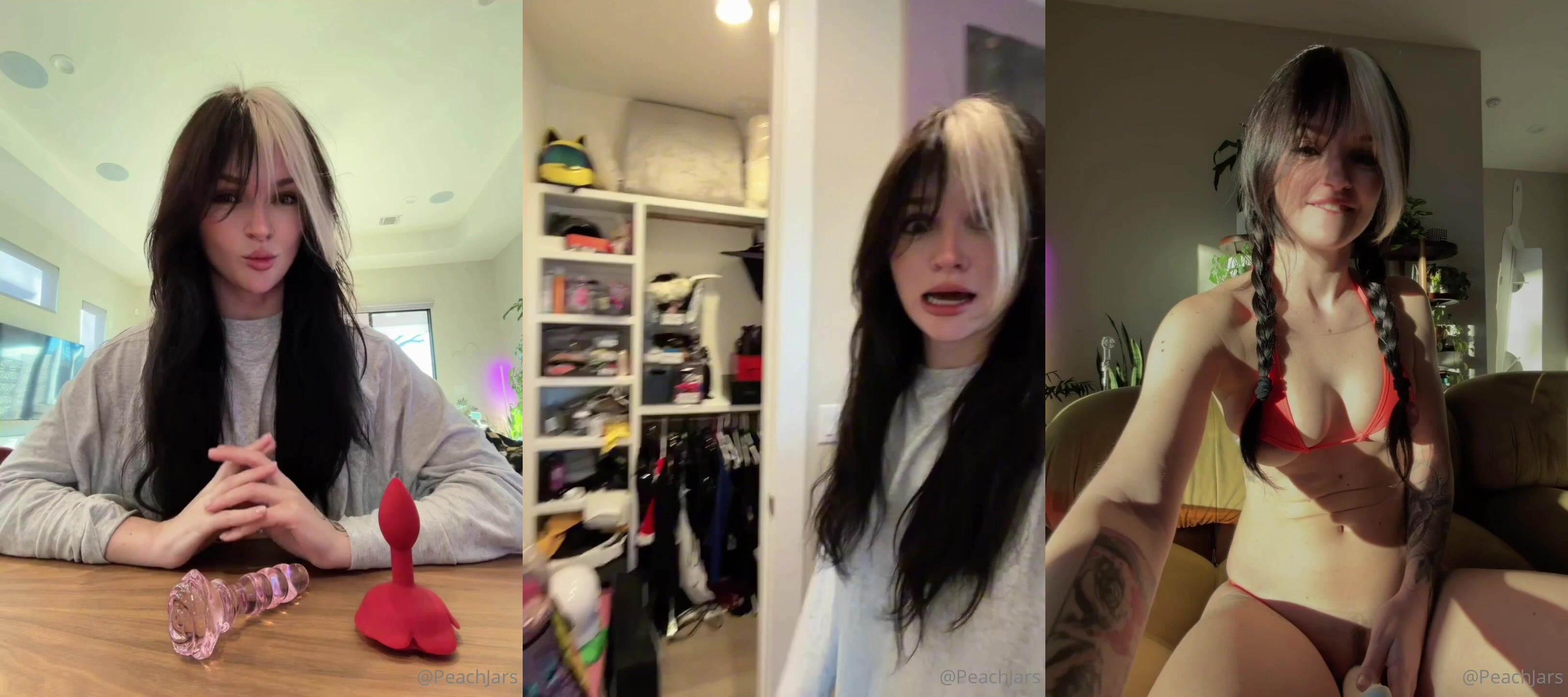 PeachJars shows her pink pussy & cums with her vibrator