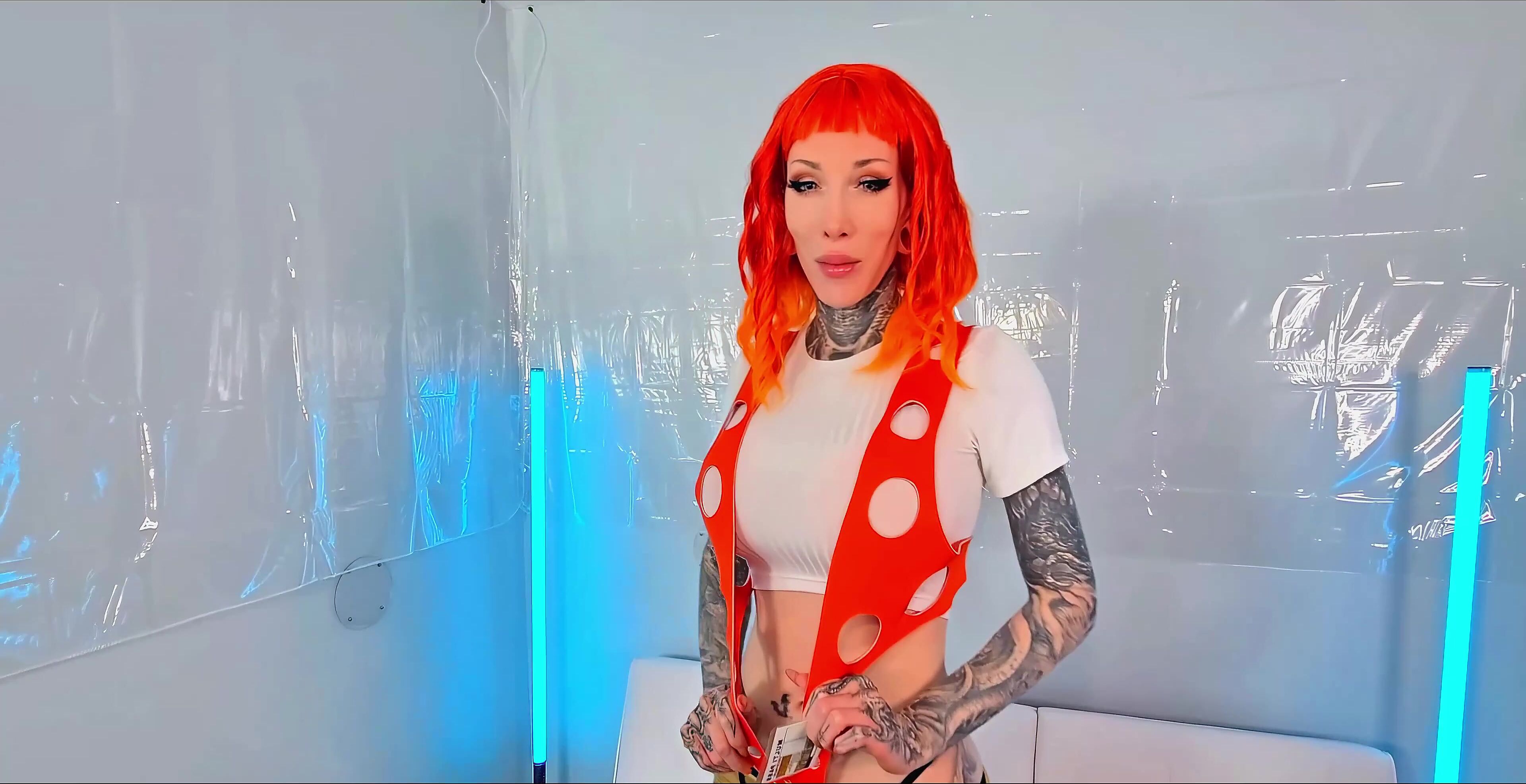 Razorcandi LEELOO cosplay, barefoot oiled up squirting