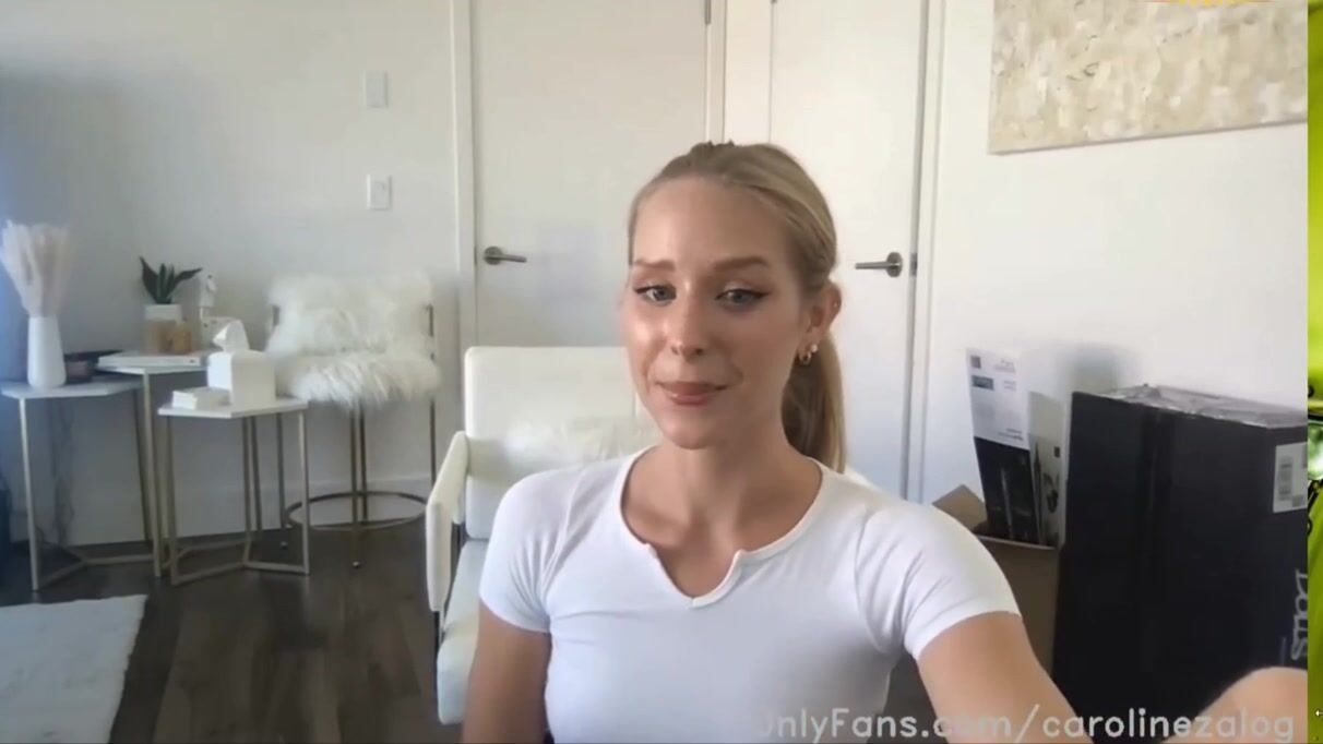 Caroline Zalog live - pink lingerie white tennis outfit